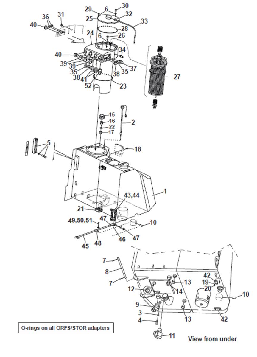 Réservoir hydraulique, montage 9905579S2